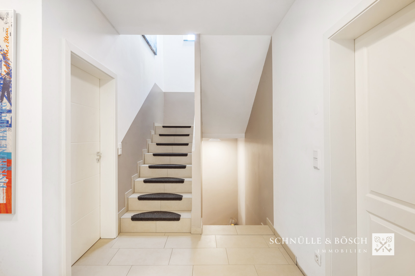Im Herzen des Regionalparks Rosengarten, einer malerischen Landschaft, erwartet Sie eine Stadtvilla, die nicht nur mit ihrer Architektur, sondern auch mit inneren Werten besticht. Auf einem majestätischen, ca. 1.800 m² großen Hanggrundstück thront diese repräsentative Villa. Die geschickte Hanglage lässt das Haus vorne über drei Etagen, hinten über zwei Stockwerke erstrahlen und ermöglicht einen ebenerdigen Kellerzugang – ein architektonisches Meisterstück, das Großzügigkeit auf 205 m² Wohnfläche entfaltet.