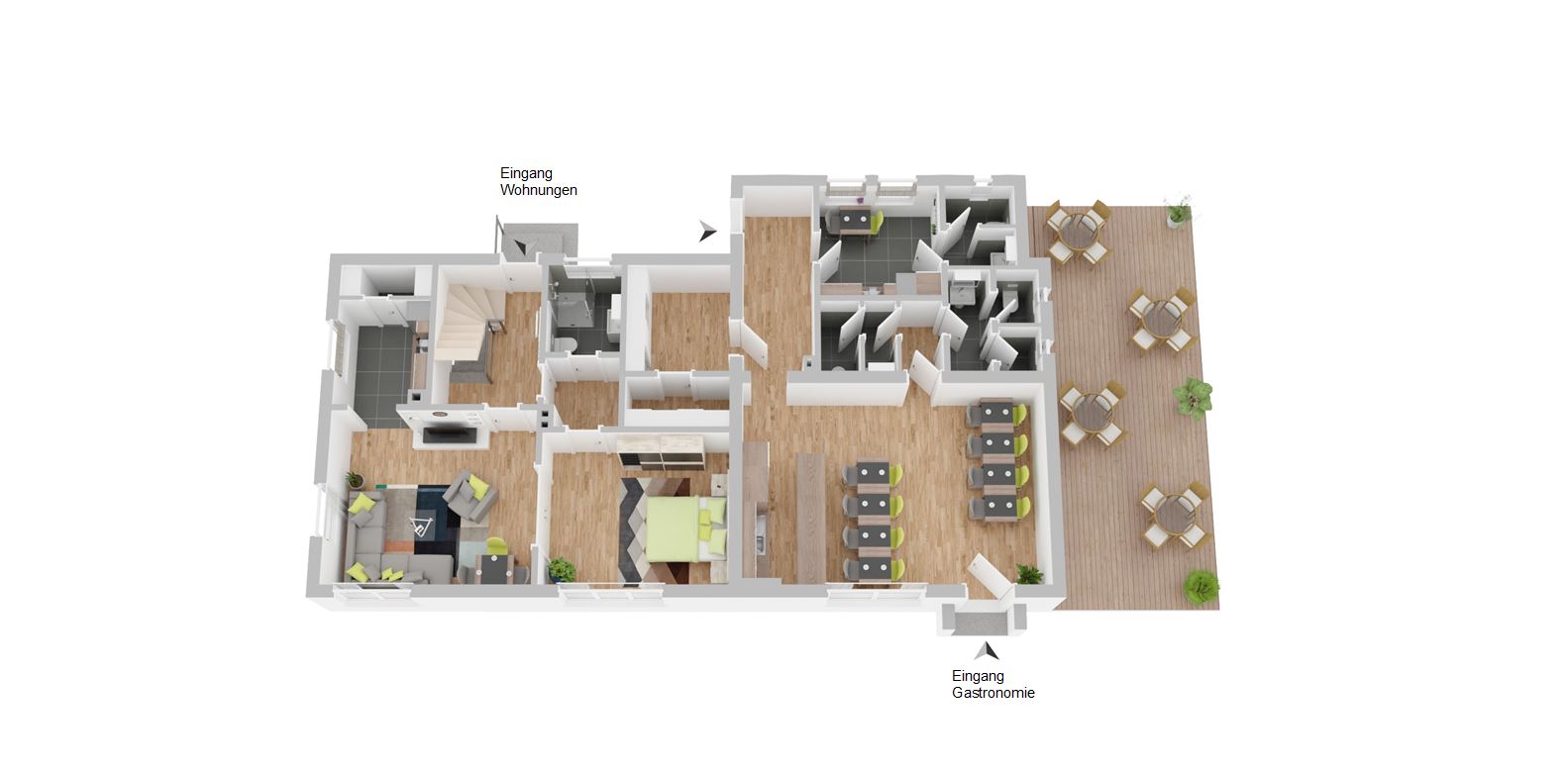 - ca. 67 m² Nutzfläche Gewerbeeinheit plus Terrassennutzung