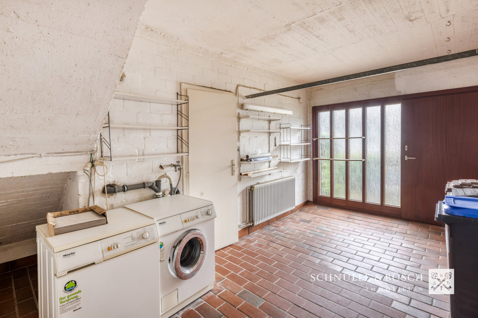 Die ehemalige Garage des Hauses ist von den Eigentümer als Hauswirtschaftsraum umgenutzt worden, denn zu diesem Haus gehört eine weitere Garage auf dem Garagenhof ca. 20m vom Haus entfernt. Hier haben Sie ausreichend Stellfläche für Ihr Auto oder andere Fahrzeuge. Daher steht die Garage im Haus zurzeit als Abstellfläche für Fahrräder, Gartengeräte oder ähnlichem zur Verfügung.
