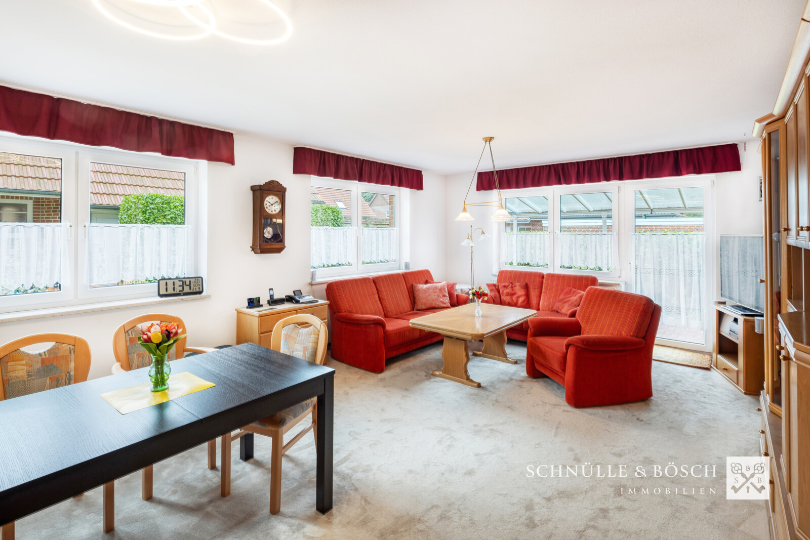 •Gartenparadies: Der pflegeleicht angelegte Garten lädt zum Entspannen ein. Genießen Sie gesellige Stunden auf der überdachten Terrasse.