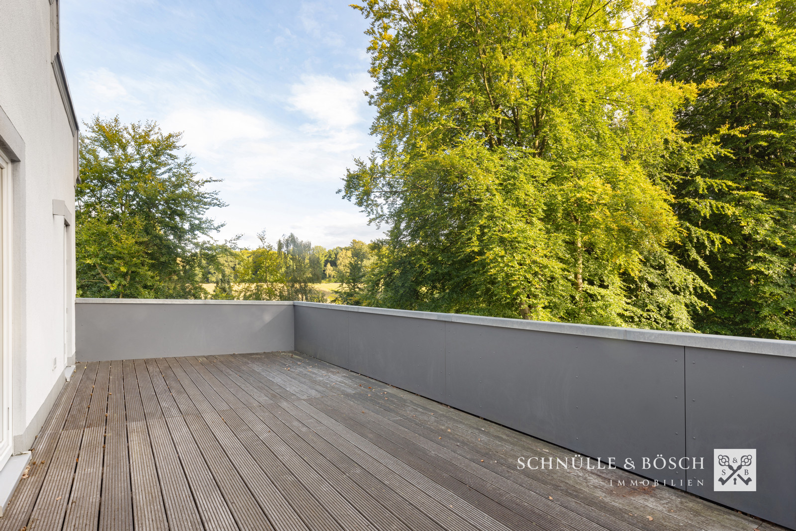 Genießen Sie das Leben im Freien auf zwei Terrassen und vor allem auf Ihrer exklusiven Dachterrasse. Von hier aus schweift Ihr Blick den angrenzenden Staatsforst – eine unbezahlbare Kulisse für Ihren Feierabend.