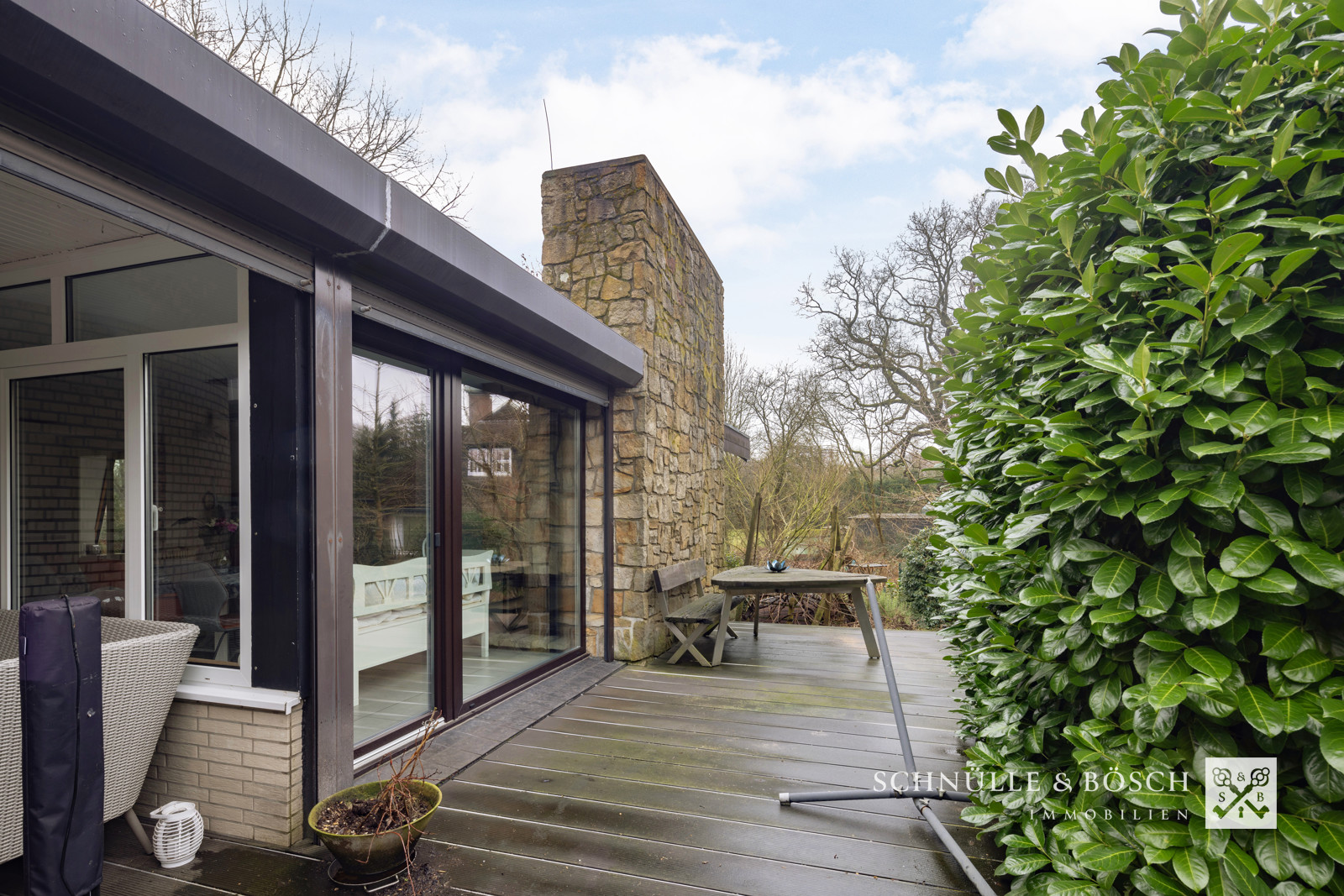 Der Garten dieses tollen Hauses ist wunderschön angelegt, mit einem eigenen Bereich für Gemüsebeete und vielen kleinen Sitzmöglichkeiten findet hier jeder seinen ganz persönlichen Ruhebereich. Die Terrasse, die vom Esszimmer aus zu begehen ist, verwandelt mit seiner Süd-West-Lage die Sommerabende in ein entspanntes Erlebnis. Sollte das Wetter einmal nicht mitspielen - ist ein Teil der Terrassenfläche überdacht und windgeschützt.