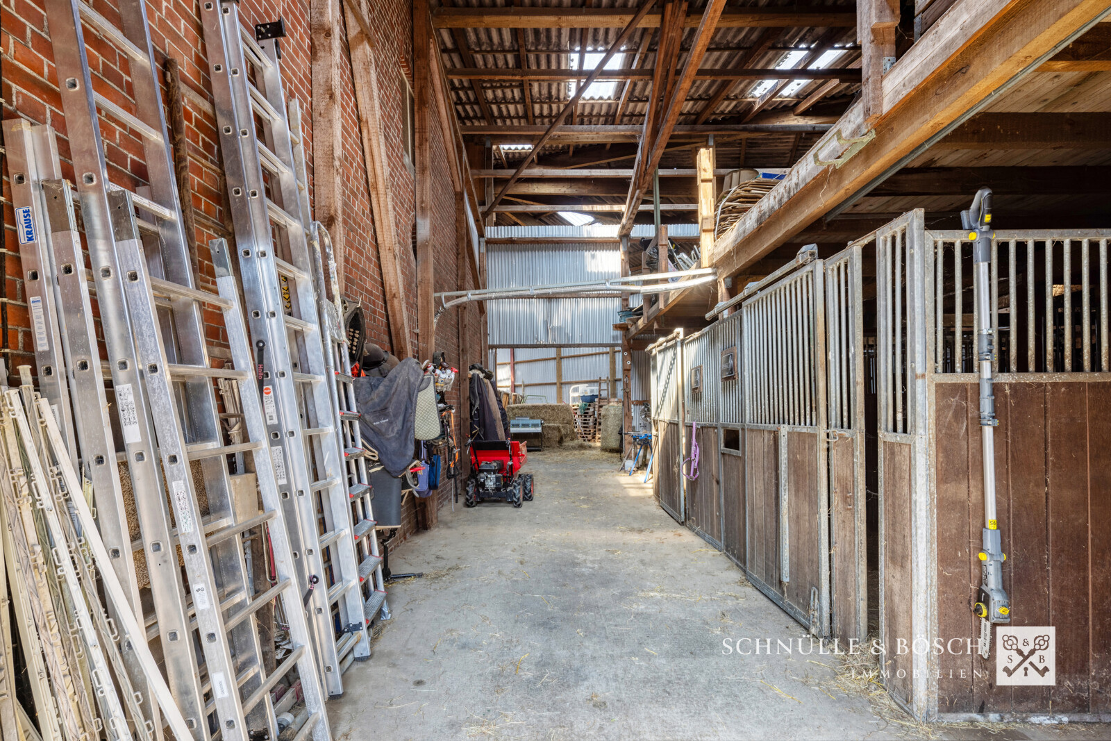 Eine weitere große Halle auf dem Grundstück beherbergt drei Einstellboxen und eine Doppelbox für Ihre Pferde. Die Reithalle von 14 x 25 m ist perfekt für das tägliche Training. Ein großer Lagerraum in der Halle, eine Garage sowie ein separates Büro mit Bad- und Küchenanschlüssen und ein zusätzlicher Raum, der erfolgreich für die Hundezucht genutzt wurde, runden das Angebot ab.