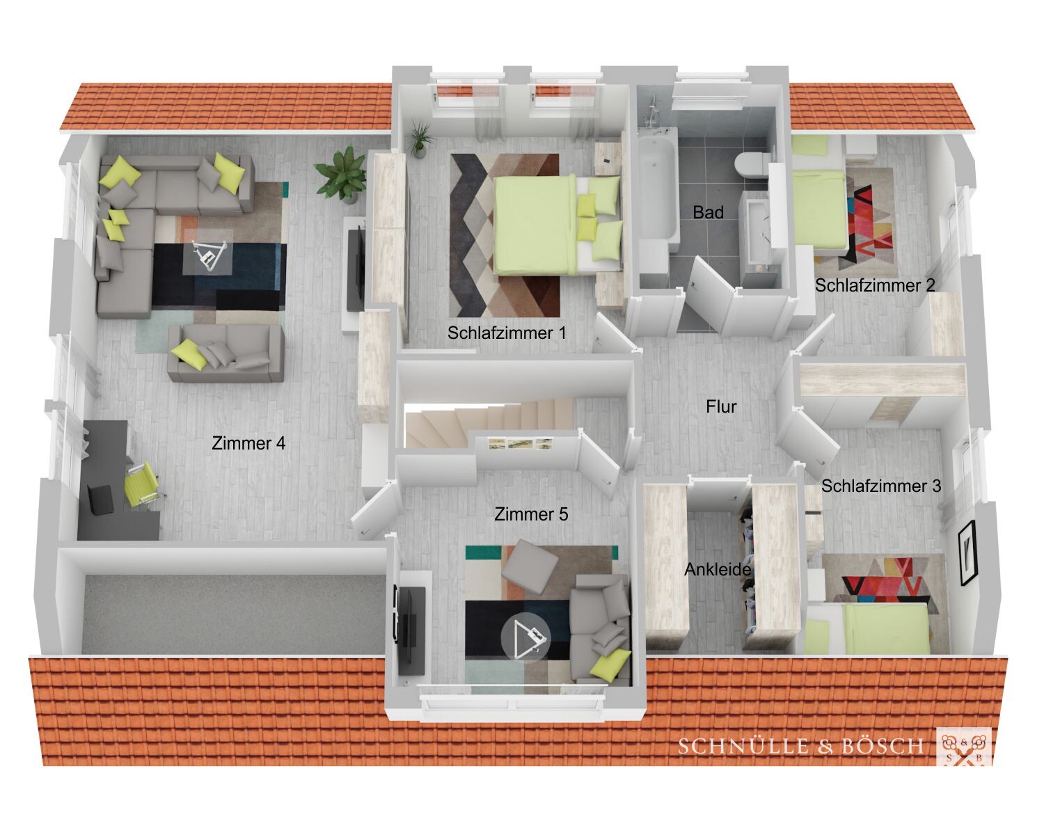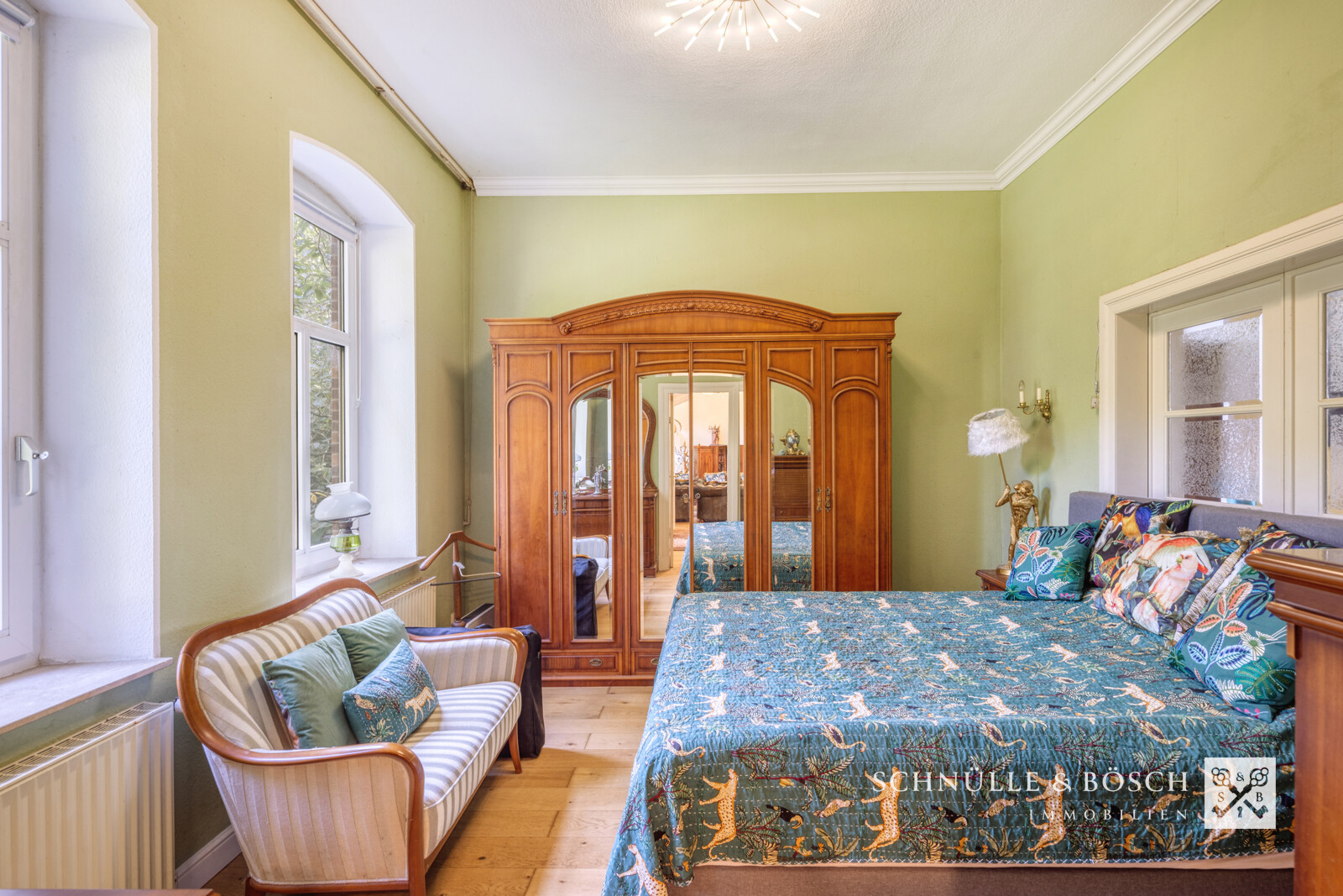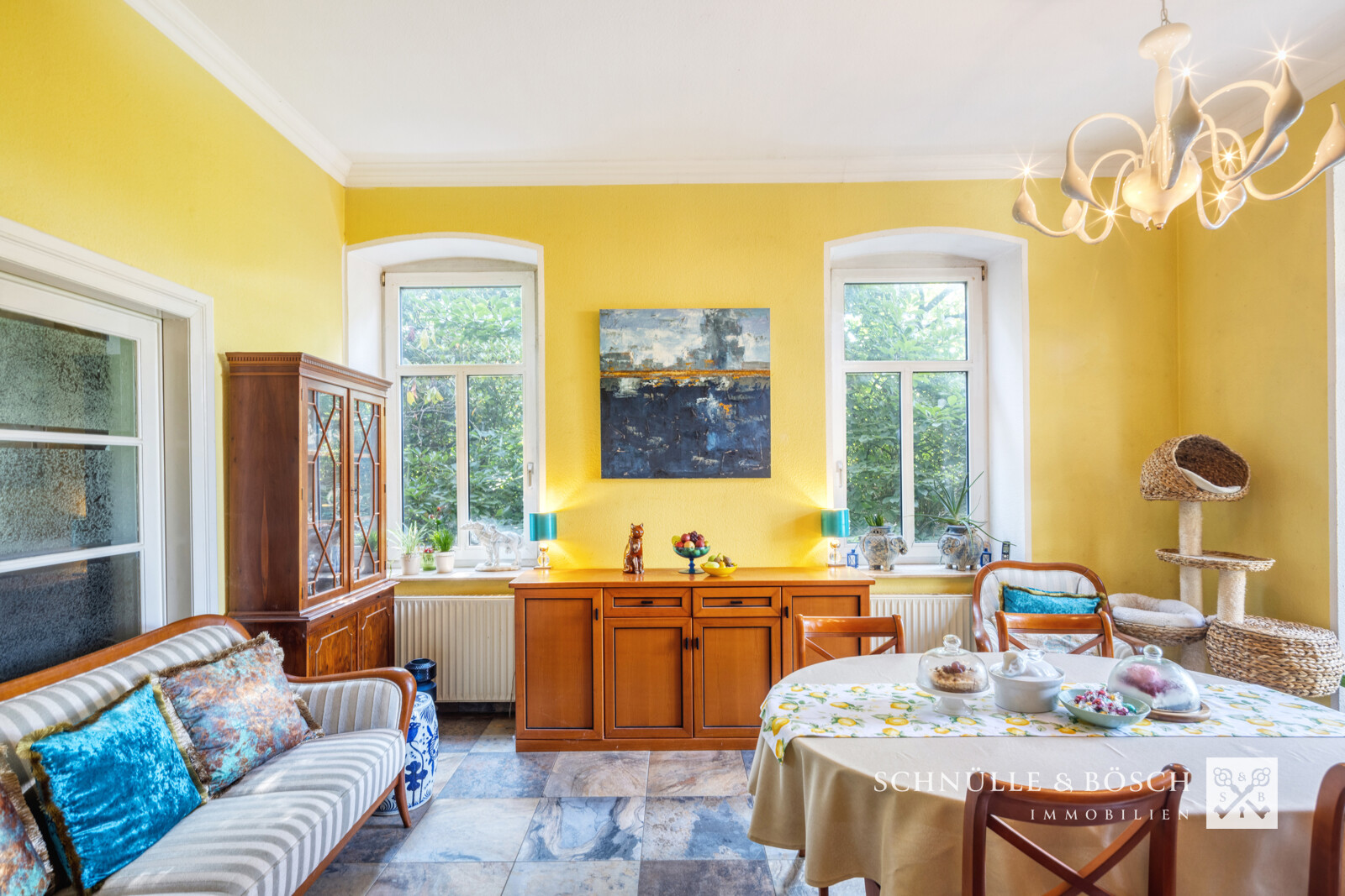Das Dachgeschoss beherbergt ein modernes Badezimmer aus dem Jahr 2023 mit Badewanne. Ein rund 75 m² großer Keller bietet zusätzlichen Stauraum. Der unbeheizte Wintergarten mit ca. 36 m² am Haupthaus ist der ideale Ort, um die Natur bei jedem Wetter zu genießen.