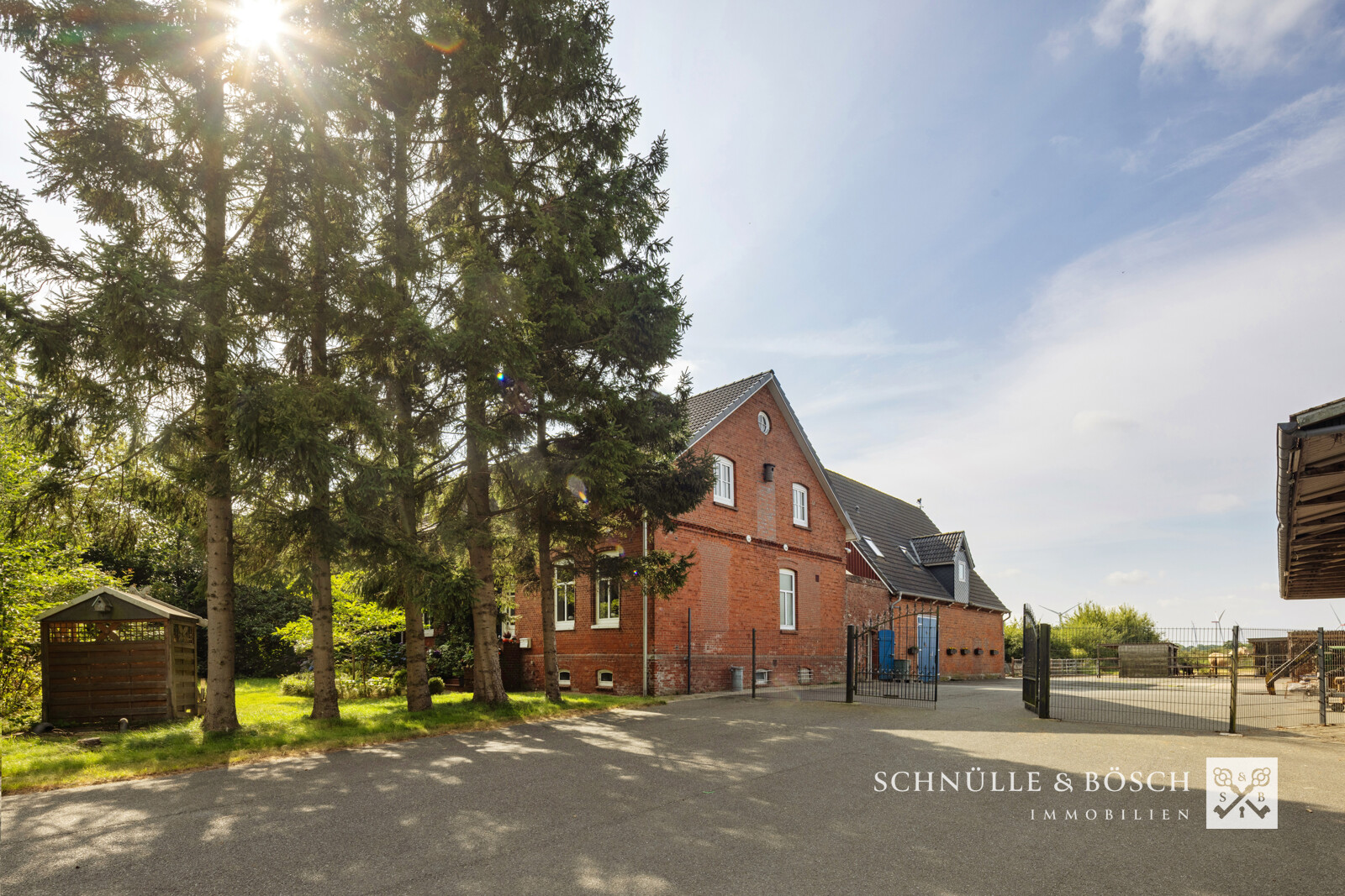 Entdecken Sie diesen tollen Gutshof, der die perfekte Symbiose aus traditionellem Charme, modernem Komfort und professioneller Tierhaltung bietet. Dieses Anwesen, eingebettet in die idyllische Landschaft und umgeben von schützenden Flethen, ist eine Oase der Ruhe und Freiheit. Es ist nicht nur ein Zuhause, sondern eine Lebensphilosophie für alle, die ihre Leidenschaft für Pferde und Hunde zum Mittelpunkt ihres Alltags machen möchten.