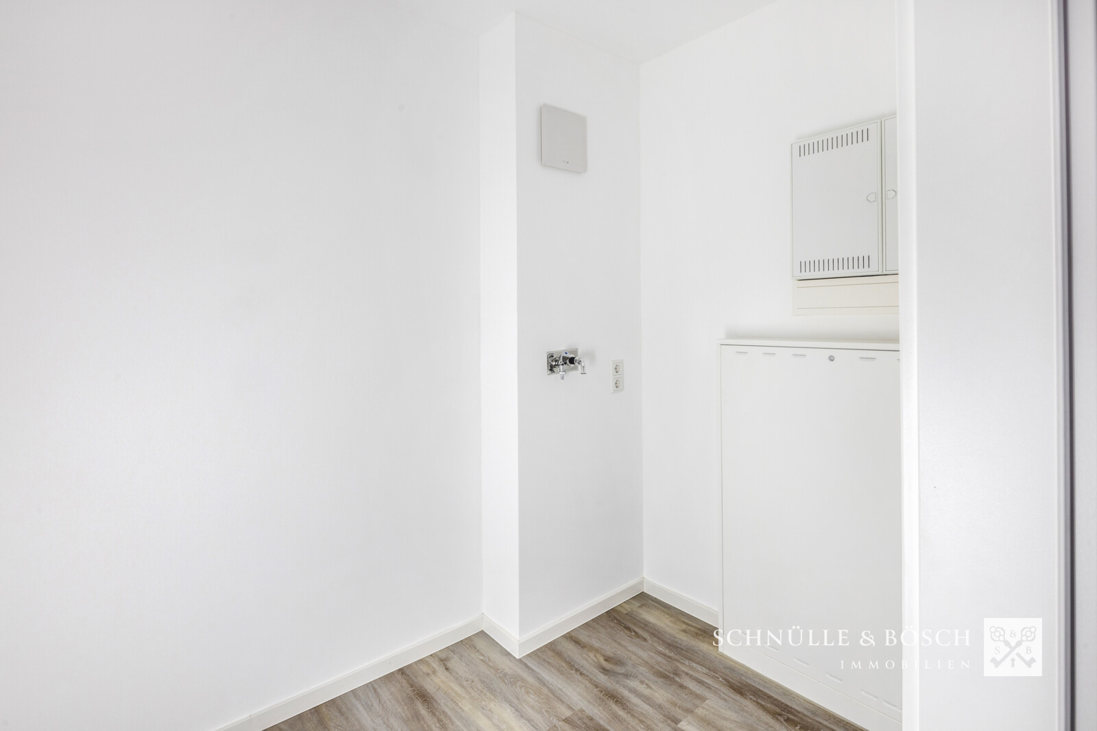 In der gesamten Wohnung wurden geschmackvolle Vinyl-Designböden verlegt, die nicht nur optisch überzeugen, sondern auch pflegeleicht und fußwarm sind.