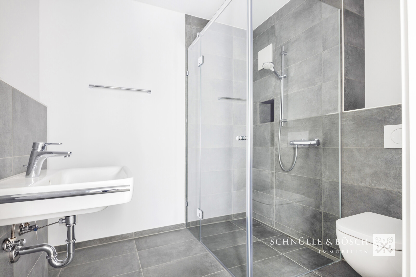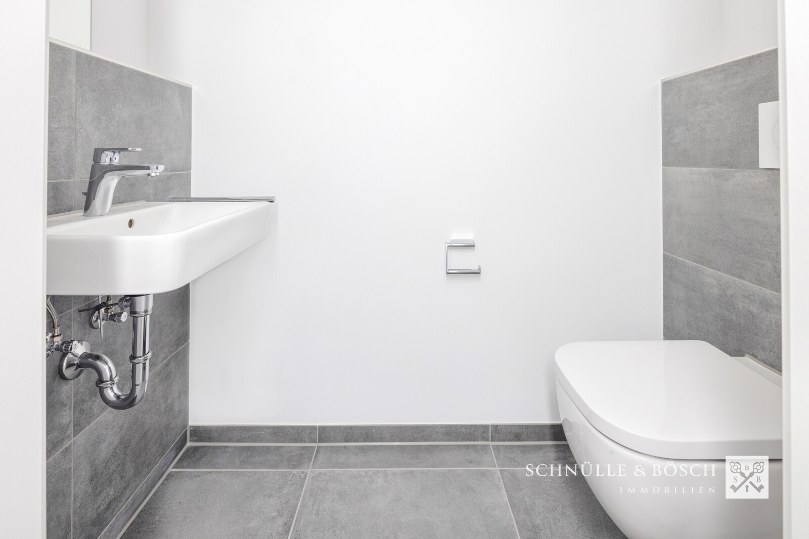 Neben dem modernen, stilvollen Duschbad verfügt die Wohnung über ein separates Gäste-WC – ideal für Besucher und einen entspannten Morgen.