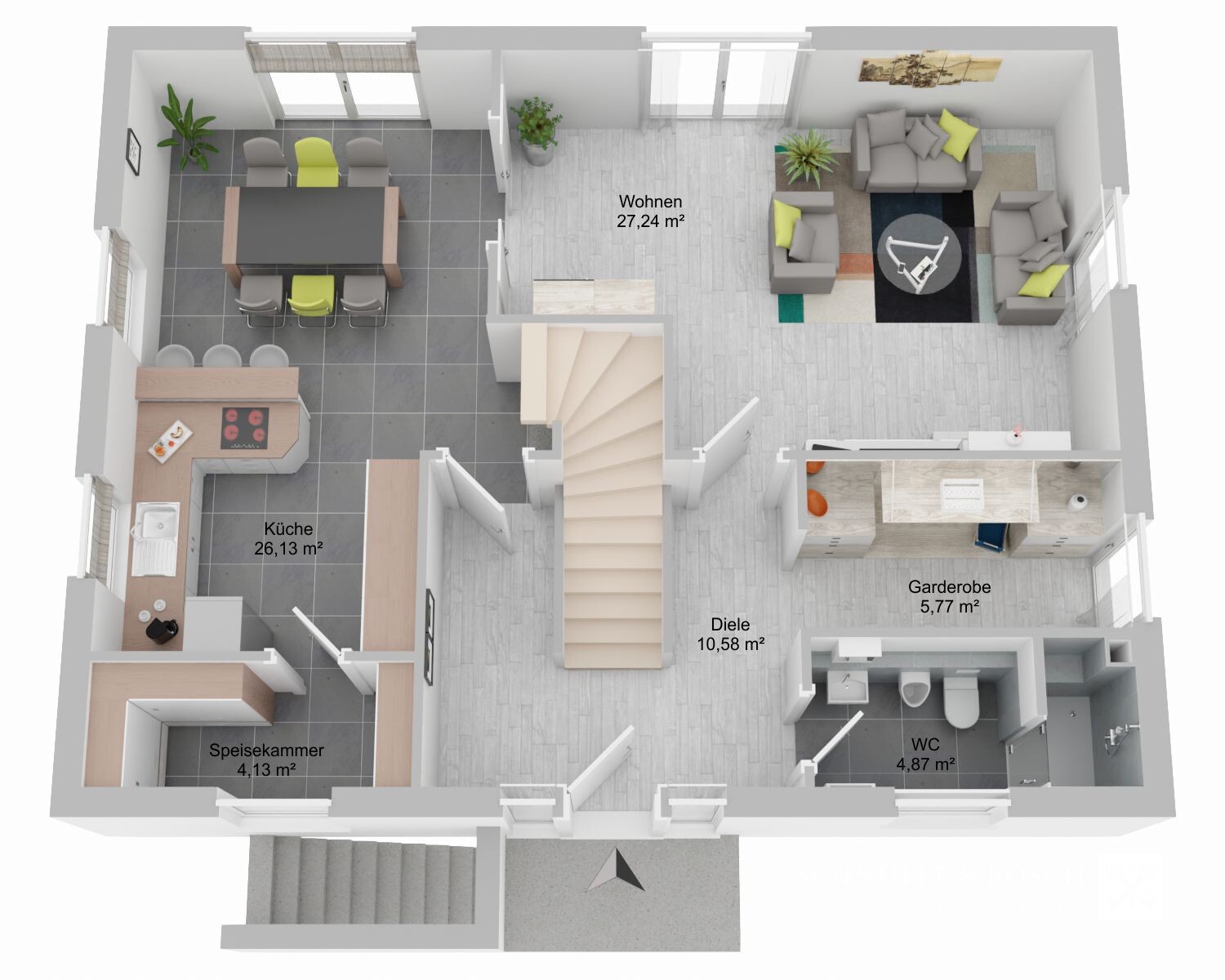 Auf einem großzügigen, 723 m² umfassenden Grundstück entfaltet sich hier ein Lebensraum, der mit 147 m² Wohnfläche und insgesamt sechs Zimmern viel Platz für individuelle Träume, Familie und Home-Office bietet.