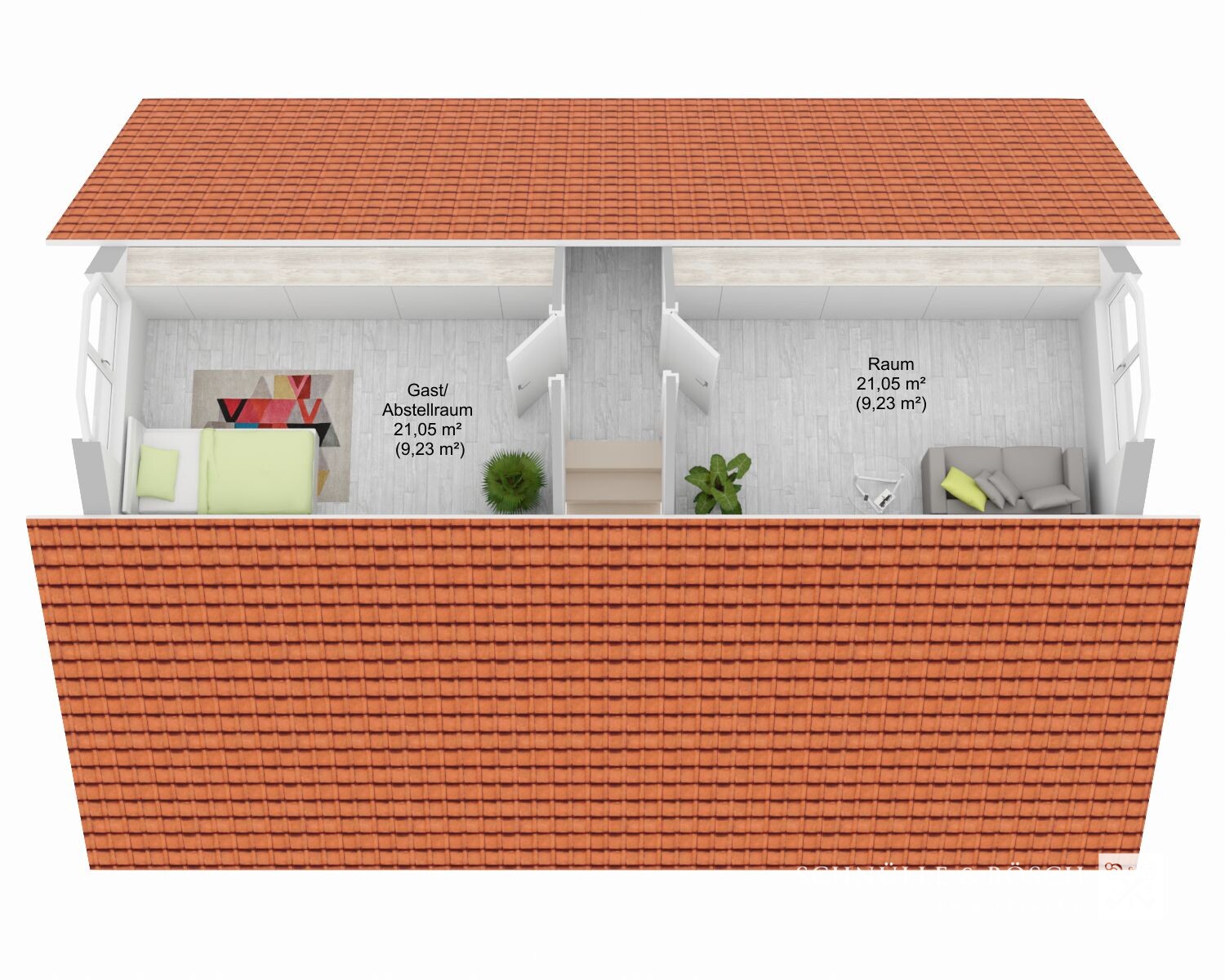 Auch an die Zukunft und den Werterhalt wurde gedacht: Der Kunststoffunterschlag unter dem Dach erspart Ihnen mühsame Malerarbeiten, sodass Sie Ihre Freizeit lieber im weitläufigen Garten genießen können.