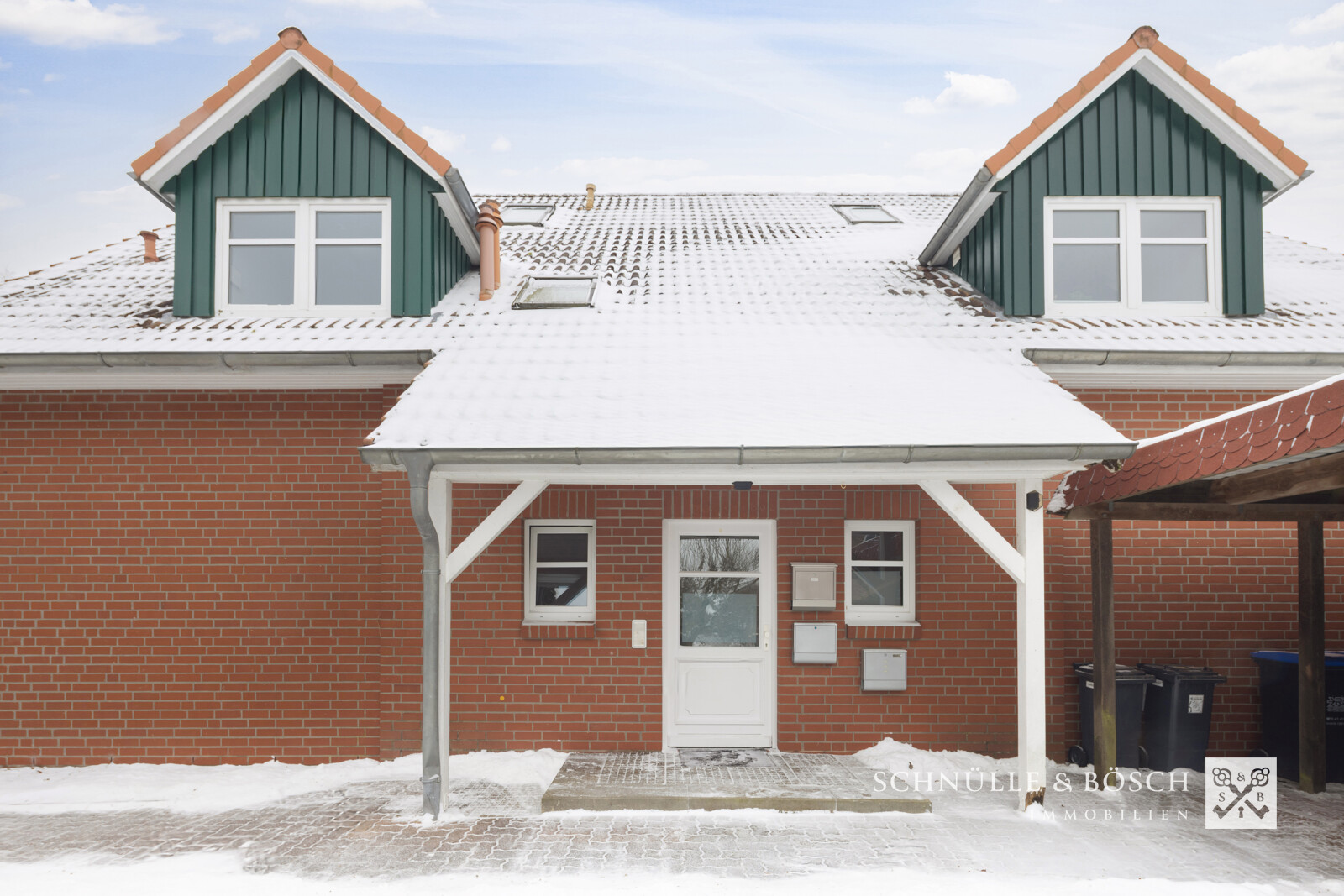 Auch an Ihre Fahrzeuge wurde gedacht, so gehört zu Ihrer Wohnung eine eigene Auffahrt mit Doppelcarport und dahinterliegendem Fahrradabstellraum oder Werkstatt.