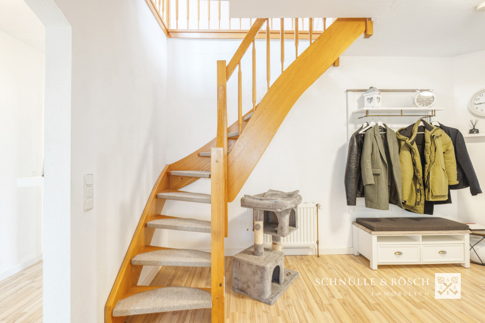 Herzlich Willkommen! Über das helle Treppenhaus diese 3-Parteien-Hauses erreichen Sie die schöne Dachgeschoss-Wohnung. Im Erdgeschoss des Hauses befinden sich zwei Wohnungen, Sie haben also das Dachgeschoss und das Studio nur für sich.