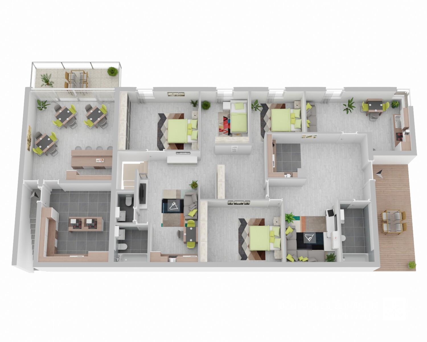 Das Haus ist auf tragenden Säulen konzipiert, was eine revolutionäre Freiheit in der Gestaltung bedeutet: Keine tragenden Wände! Ihr Grundriss ist vollständig veränderbar – ideal für Großfamilien, Co-Living-Projekte oder eine luxuriöse Einzelresidenz.