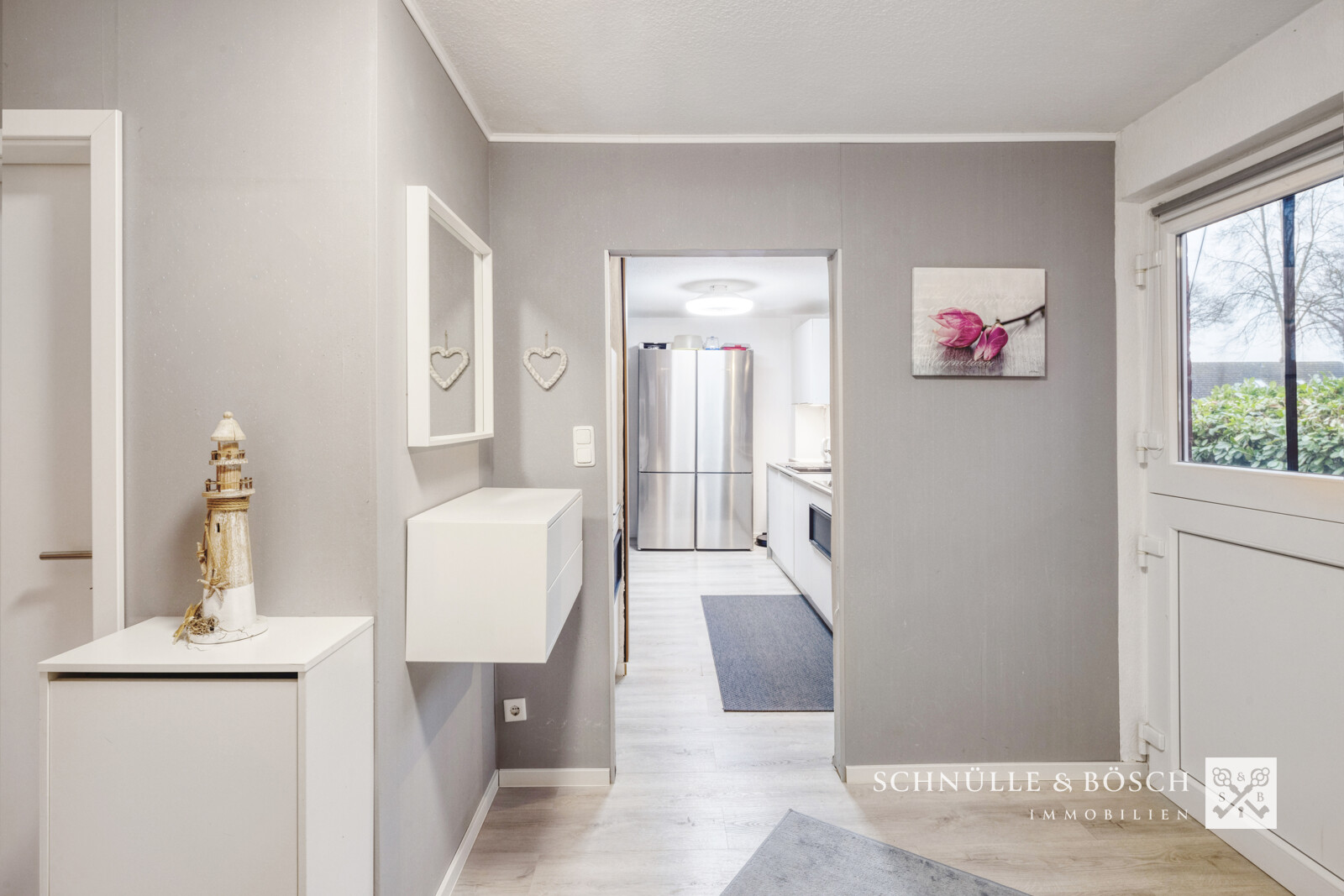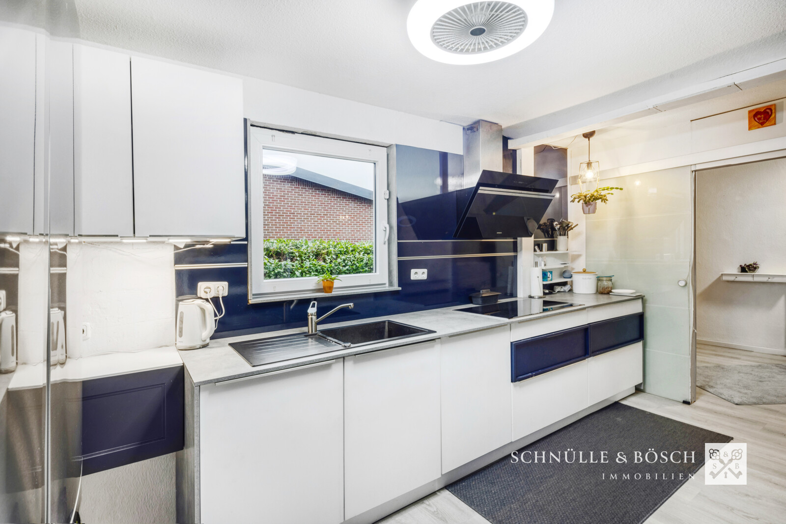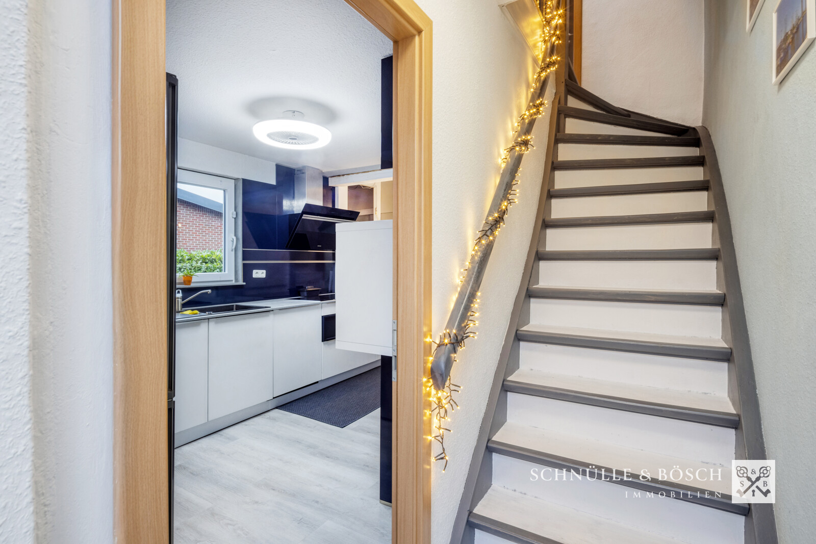 Durch die weiße Hauseingangstür gelangen Sie in den Eingangsbereich dieses schönen Hauses. Von hier aus geht es über den Flur direkt in den offenen Wohn- und Essbereich, der das Herzstück des Hauses bildet. Durch die großen Fenster mit Süd-Ausrichtung halten auch Sie sich sicher gerne hier auf. Vom Flur aus erreichen Sie das großzügige Schlafzimmer mit begehbarem Kleiderschrank sowie das angrenzenden Bad mit Dusche. Auch die Nebeneingangstür und der Kellerabgang sind vom Flur direkt zu finden. Die Küche des Hauses lässt alle Herzen höher schlagen. Beim Einbau 2018 ist besonderer Wert auf die Struktur und Gestaltung gelegt worden. Hier wird das Kochen zum großen Spaß.