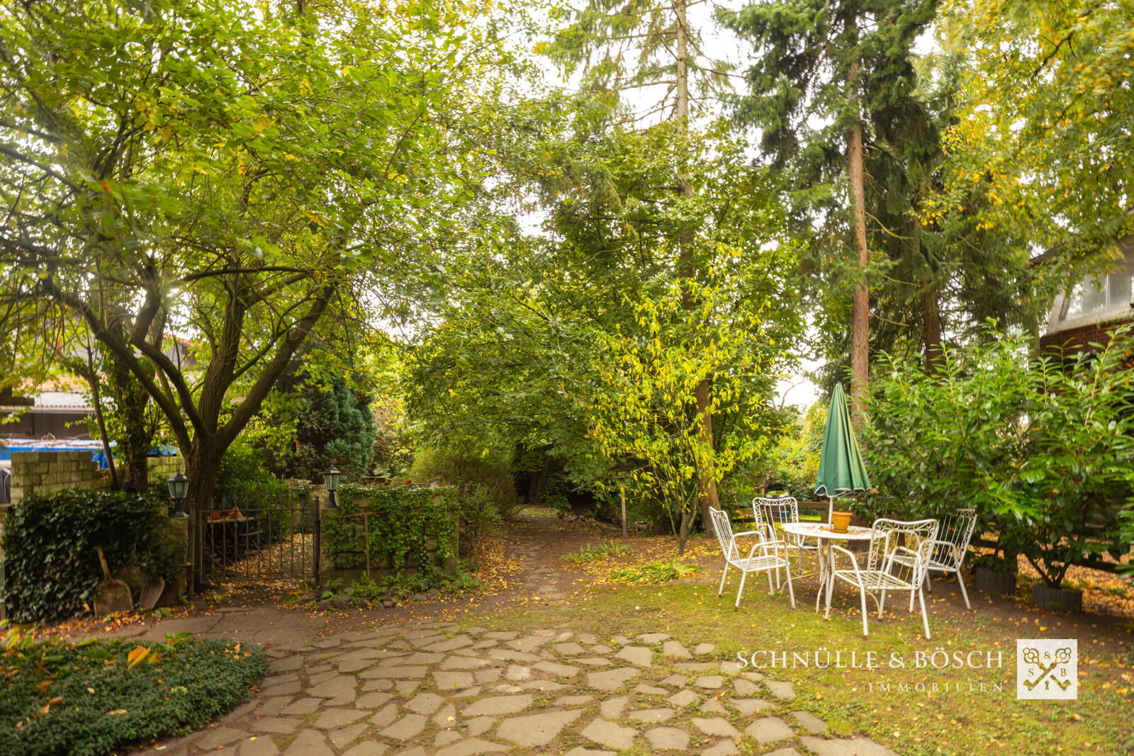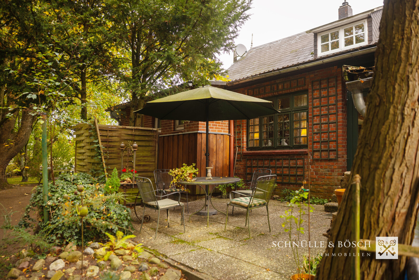 Von der Küche aus gelangen Sie direkt auf die schöne und nicht einsehbare Terrasse. In diesem tollen Garten findet jeder seinen Lieblingsplatz.