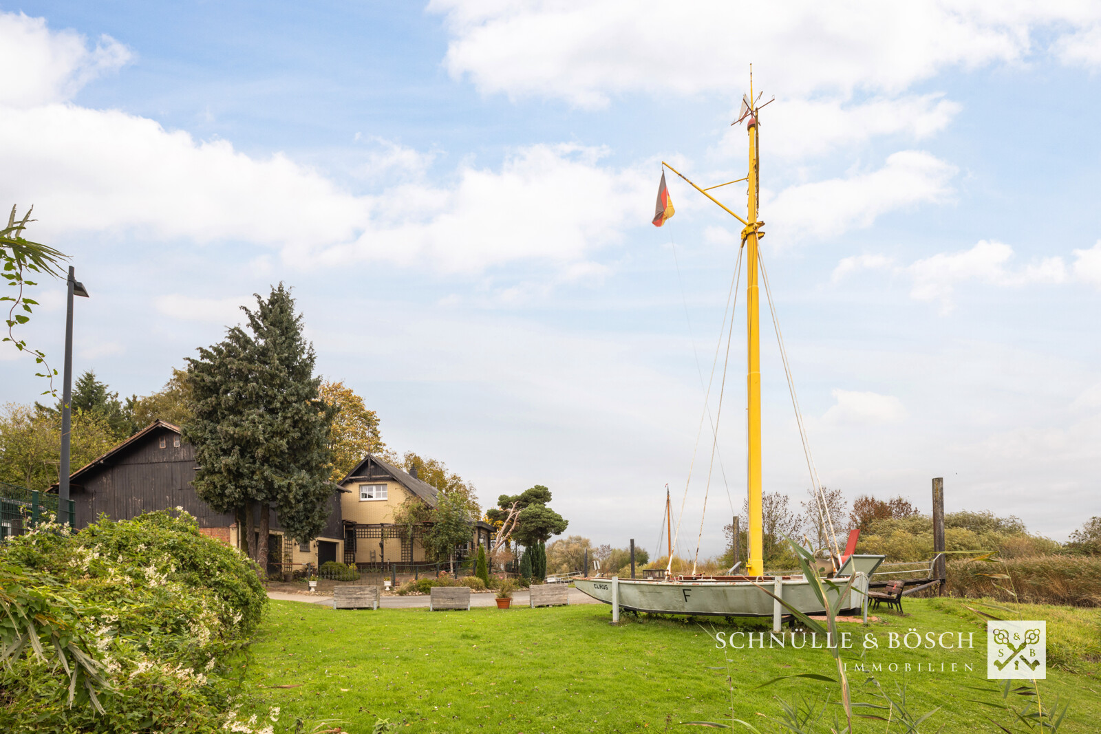 Das Grundstück erstreckt sich bis zum Fluss, was Ihnen die Möglichkeit bietet einen eigenen Liegeplatz für Ihr Boot zu errichten. Sie können also direkt von Zuhause in die große weite Welt starten.