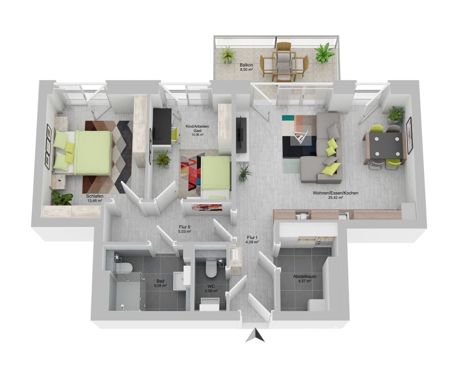 Nicht nur die Wohnung überzeugt, auch die Umgebung macht das Leben leicht. Für die frischen Brötchen am Morgen sorgt der bekannte Bäcker Schrader in unmittelbarer Nähe. Auch der Wocheneinkauf ist im Handumdrehen erledigt: Der Famila Markt liegt direkt „um die Ecke“. Hier genießen Sie die perfekte Mischung aus moderner Wohnruhe und erstklassiger Nahversorgung.