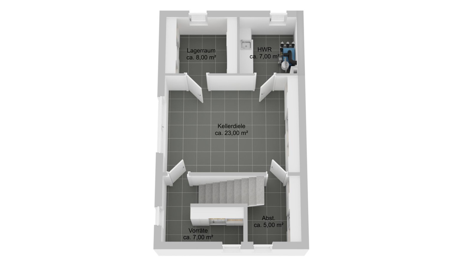 Die Immobilie verfügt über einen Teilkeller. Hier finden Sie Lagerflächen, den Hauswirtschaftsraum sowie die Brennwerttherme aus dem Jahr 2021 und eine Wasserenthärtungsanlage.