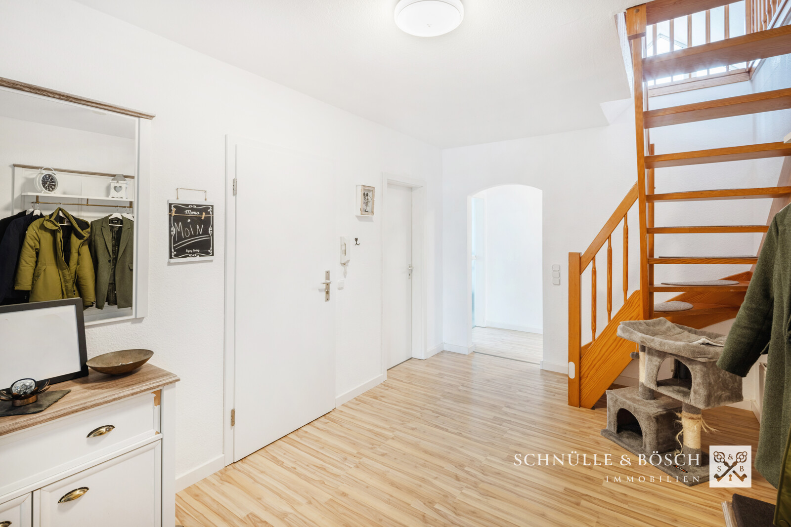 Herzlich Willkommen! Über das helle Treppenhaus diese 3-Parteien-Hauses erreichen Sie die schöne Dachgeschoss-Wohnung. Im Erdgeschoss des Hauses befinden sich zwei Wohnungen, Sie haben also das Dachgeschoss und das Studio nur für sich.