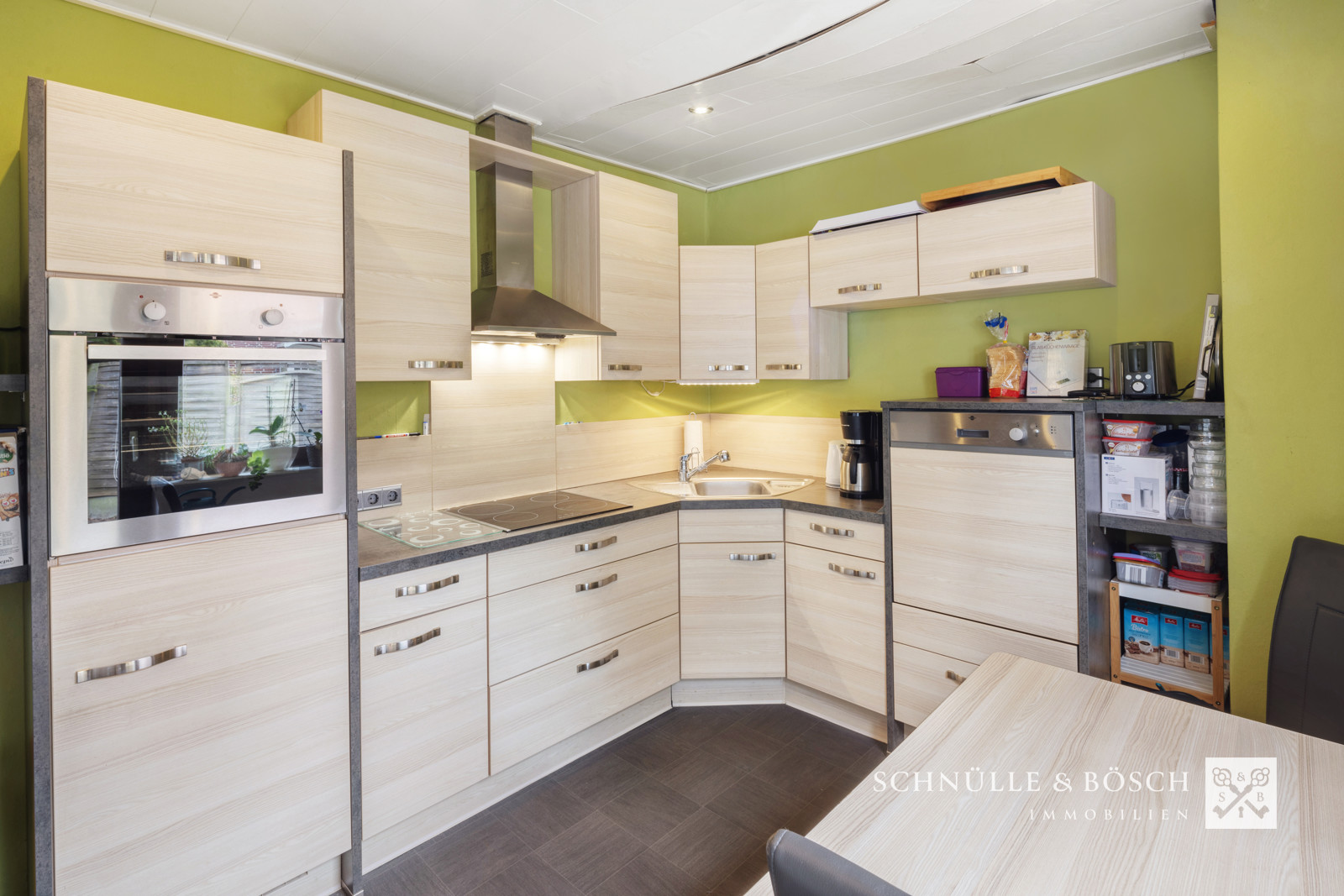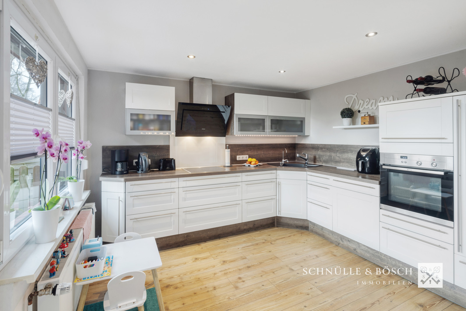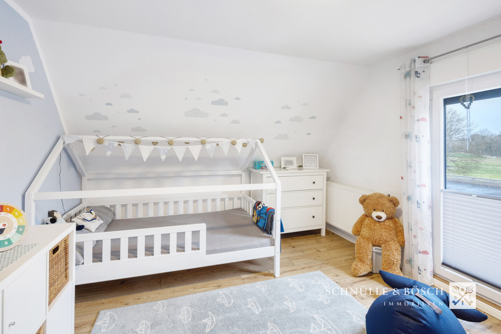 Ein besonderes Highlight ist der schöne Garten eingezäunte Garten, der Kindern und auch vierbeinigen Familienmitgliedern ausreichend Freiraum bietet. Hinter dem Grundstück ist der Blick frei auf Wiesen und Wälder.