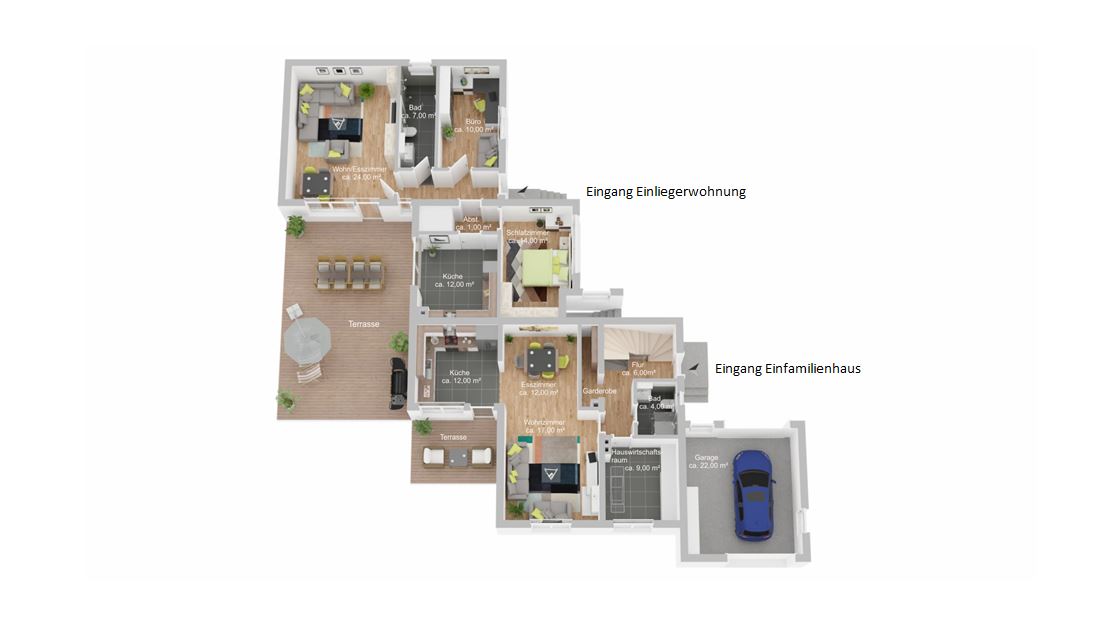 - ca. 84 m² Wohnfläche Einliegerwohnung