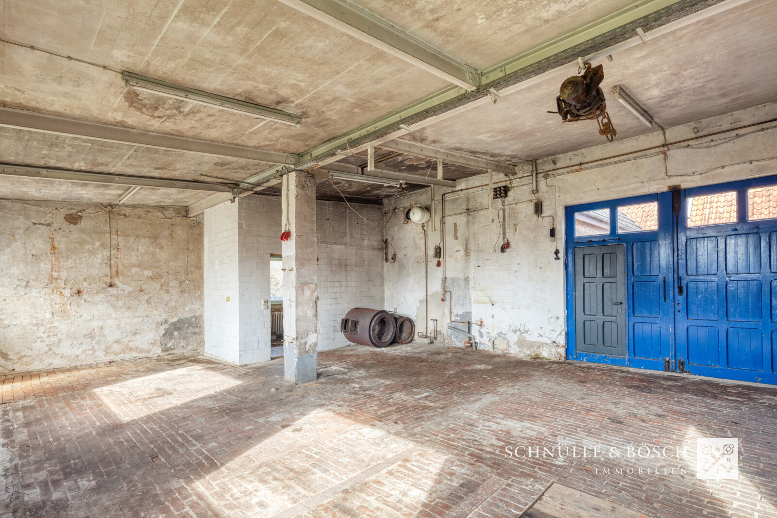 An dieses Haus schließt eine tolle Garage, mit einer Einfahrthöhe von ca. 3,5 m an. Früher ist dies als Werkstatt genutzt worden und lässt für Hobbybastler und Kreative keine Wünsche offen. Verwirklichen Sie sich selbst oder vereinbaren Sie berufliches und privates mit ihrer eigenen Werkstatt auf dem Hof.
