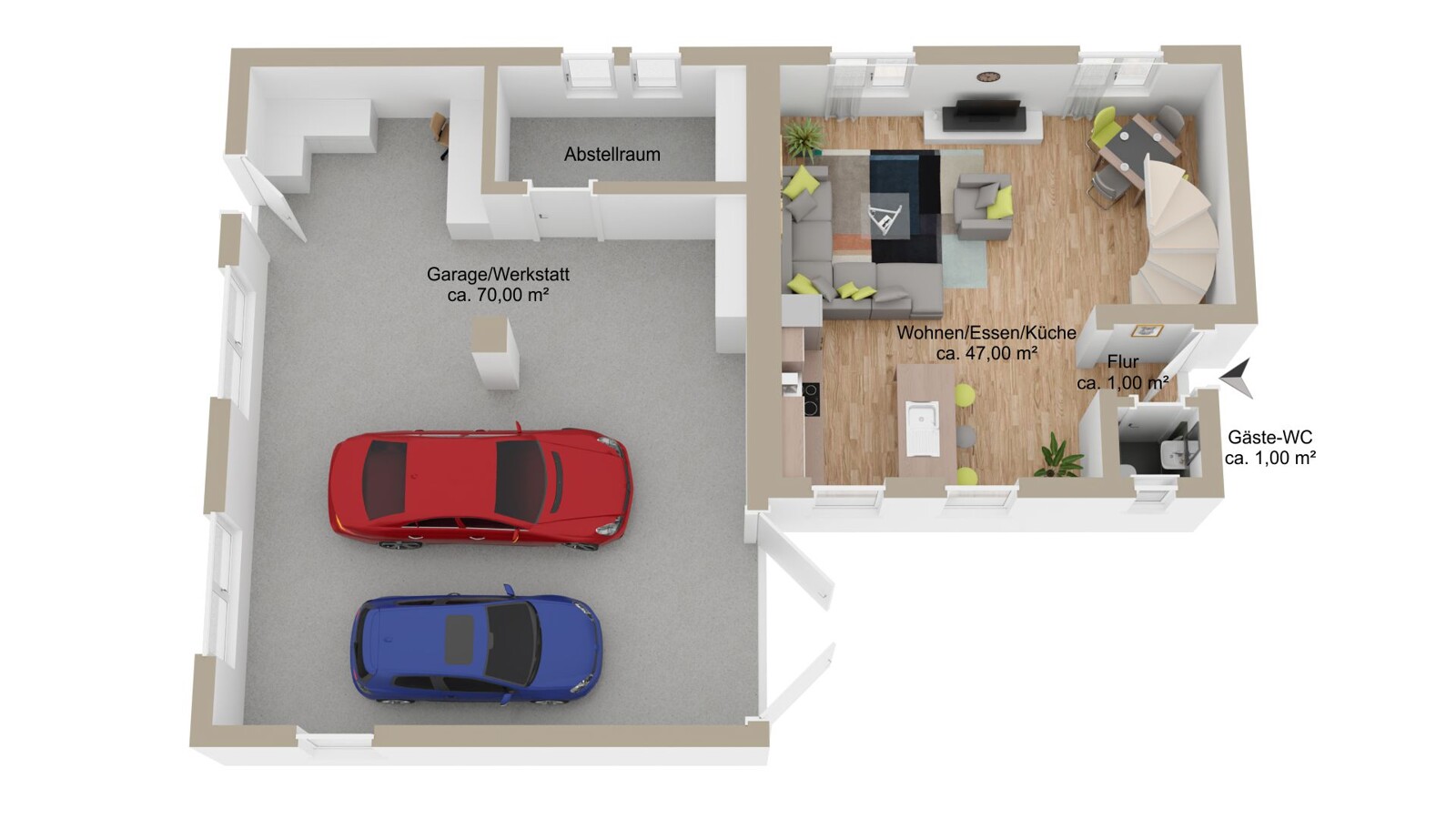 - ca. 70 m² Nutzfläche Werkstatt / Garage