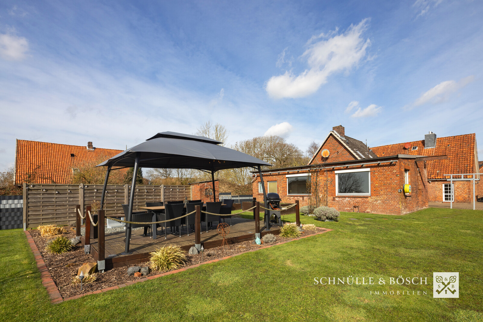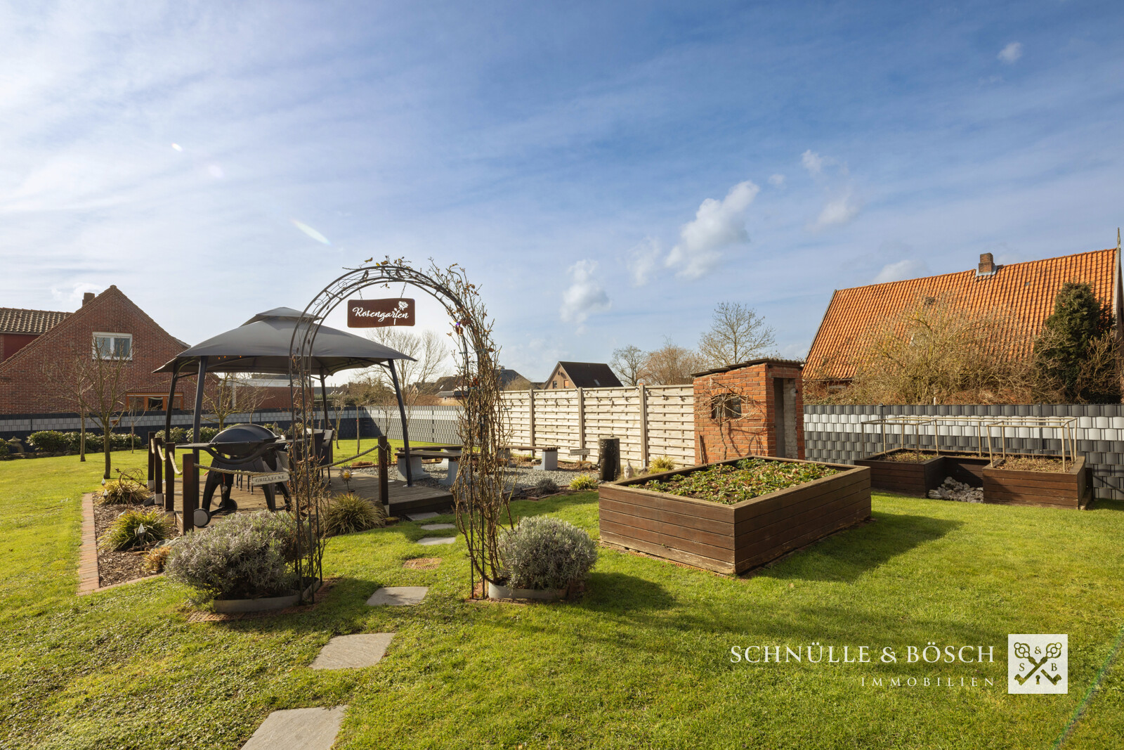- Angelegter Garten mit Einzäunung und Sonnenterrasse